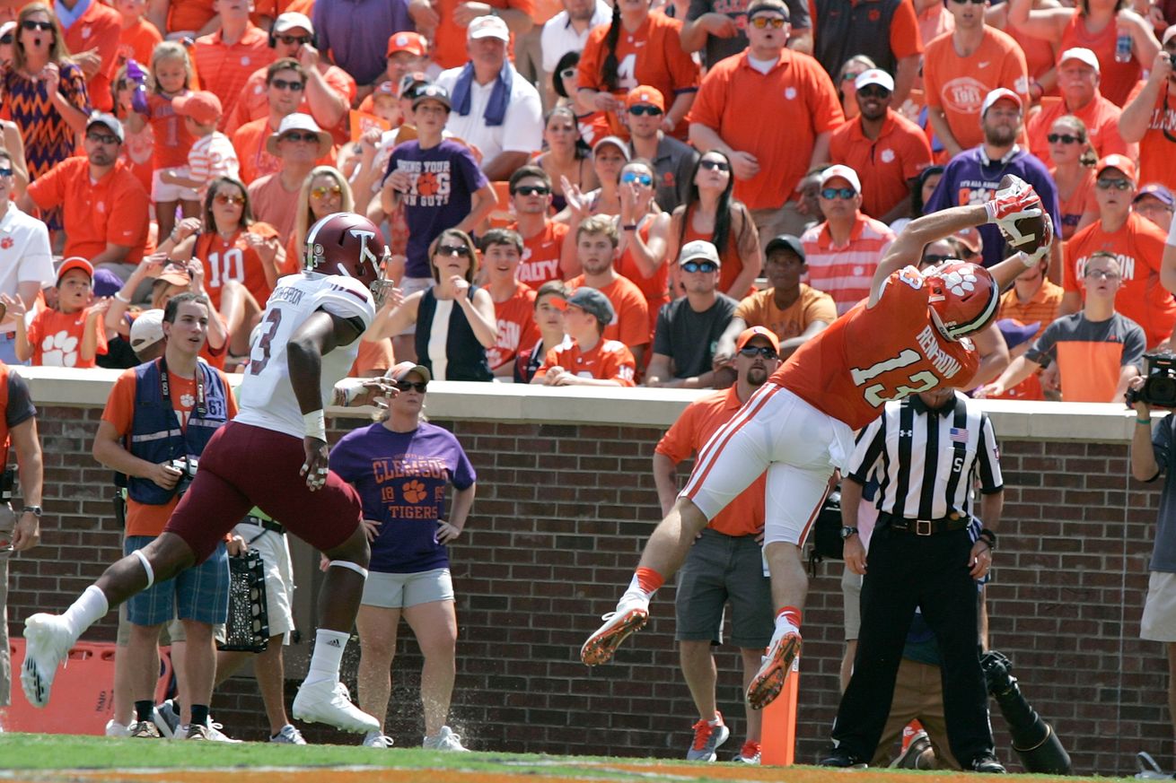 As first reported by TigerNet, Hunter Renfrow suffered a broken hand during Clemson’s week 2 contest against Troy. After making an acrobatic touchdown catch, his second of the season, he crumpled to the ground. He eventually got up and appeared okay, but it was likely this play (pictured above) during which he was injured.