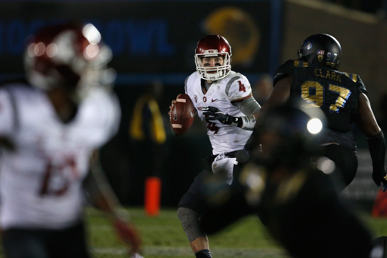 - Doesn’t think much of the Air Raid, or Falk? A guy who spent most of his time coaching in the NFL would seem to be more likely to see the Air Raid as gimmicky. The only question mark here would be the inclination to think the person has been around the college game for a while, but Mora’s been at UCLA for four years, so that might be explain the initial comment — he’s seen three WSU QBs in that time. Additionally, Falk got hit a bunch against the Bruins (obviously), and the Bruins have hit all of WSU’s QBs repeatedly over the years. Also, despite the game-winning TD throw, Falk didn’t put up great numbers against UCLA — 331 yards on 53 attempts.