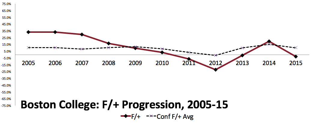 In 2015, Boston College may have been the single most perplexing team in the entirety of college football. Defensively, the Eagles were among the best teams in the nation, finishing the season with the third-best defense in the nation according to the NCAA S&P+ defensive rankings. But for as good as Boston College was on defense, they were equally bad, if not worse, offensively in 2015, coming in at No. 124 in the NCAA offensive S&P+ rankings.