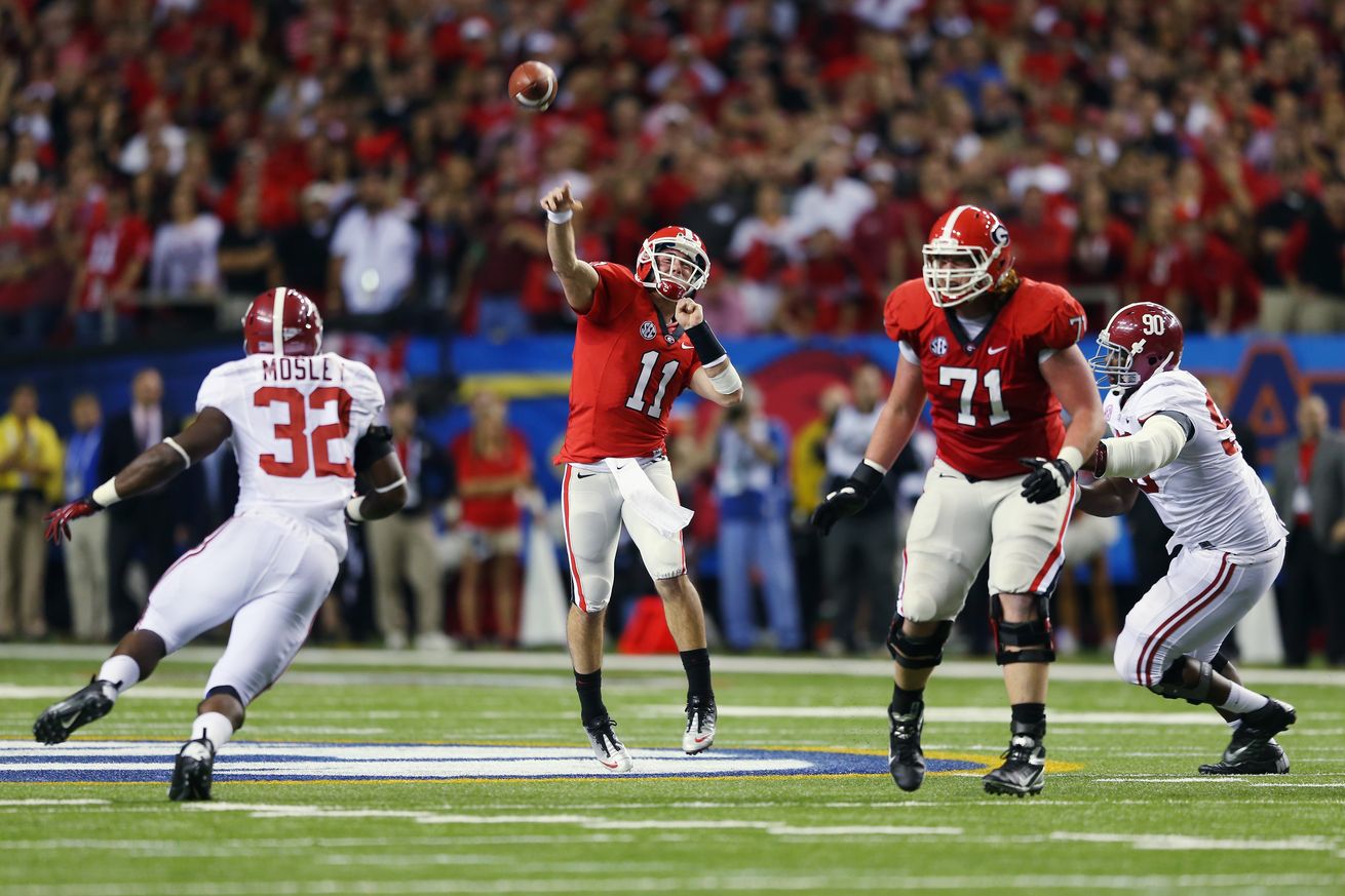 The immediate fortunes of the two programs were shaped that day. And, fairly or not, the legacy of players and coaches would be cemented as well. For Alabama it would mean a chance to win a national title against the only program historically in its punching class. For Georgia, it would mean the diminution of Mark Richt’s excellent career and would forever (and wrongly) cement the “choking Dawgs” label that he had worn for a almost a decade. For Aaron Murray, the damage was worse: one of the SEC’s all-time great players, a quarterback who caught so much flak for other failings of the team, would practically vanish from the collective conscious of the conference.