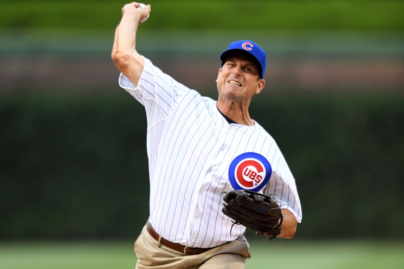 Harbaugh throws the first pitch at Wrigley Field pic.twitter.com/9evqAWQ4SY