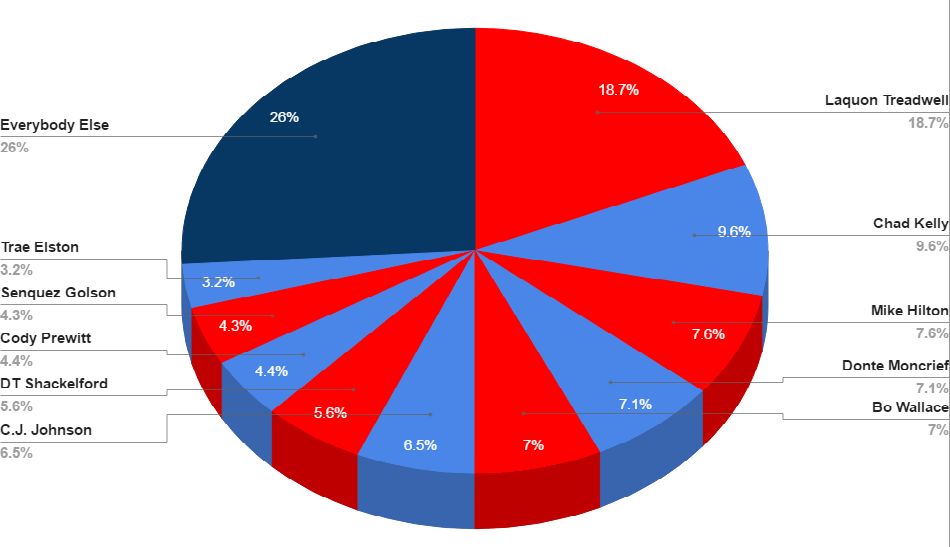 We bet y’all like pie charts too. Here’s how the votes shook out for the 59 players y’all selected, with emphasis placed on the top-10: