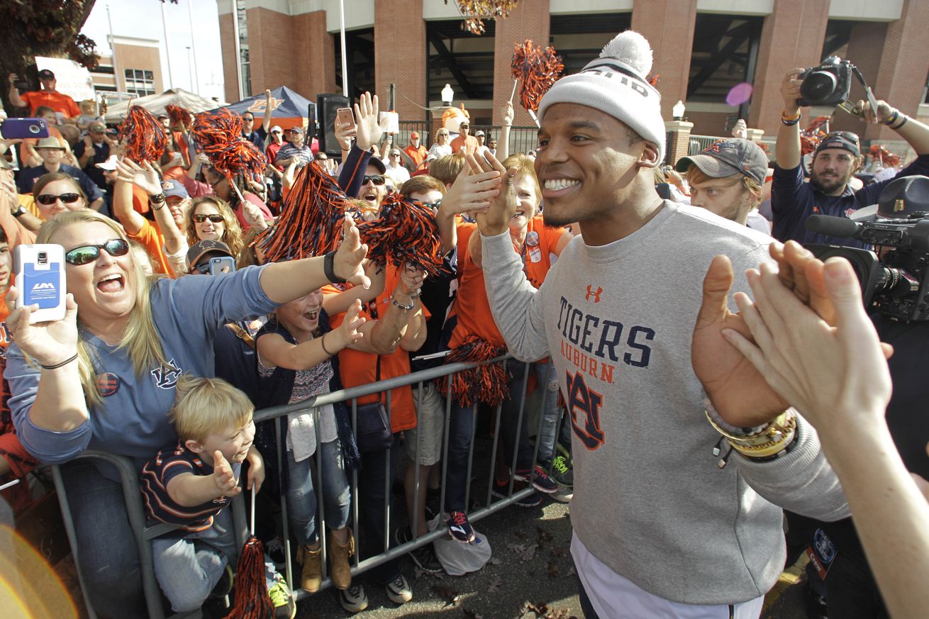 But I digress. I do not really know very much about Hubbard. Frankly, he is only tangential to our story. What I do know is that when casting about for a new moral paragon for whom the former Mike Hubbard Boulevard should be named some high-minded citizens of Opelika decided that the name for the job, the name to erase the stain of scandal, to clarify for incoming visitors what Auburn stands for, was that of… Cam Newton.