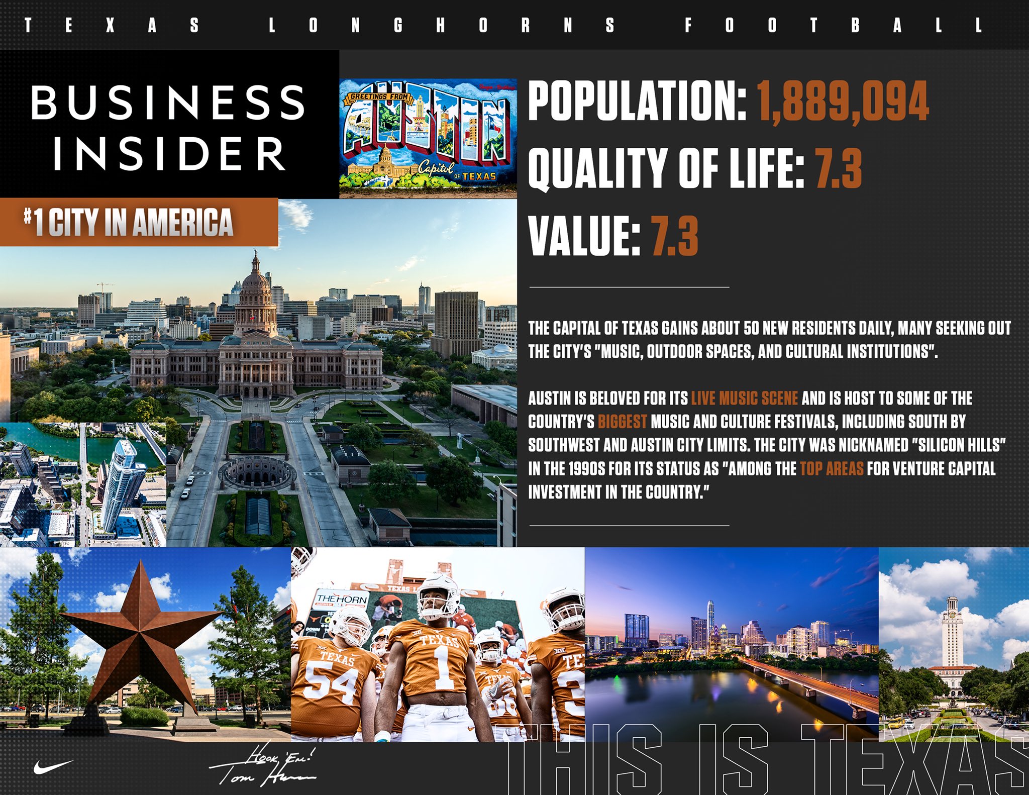 #1 CITY IN AMERICA, BUSINESS INSIDER. Folks, if you don’t believe this is a keep-up-with-the-Joneses response to Texas A&M Football social media marketing, I don’t know what to tell you. NO ONE in college football is more obsessed with #Business. This is a clear effort to nudge in on that rich market of #Business-oriented blue-chip recruits that we’ve been freely harvesting unimpeded now for years. It’s shrewd, if a bit lacking in subtlety. But when did being subtle ever win at #business? You simply cannot argue that Austin is the #1 city in America, because Business Insider has declared it so.