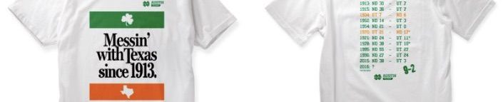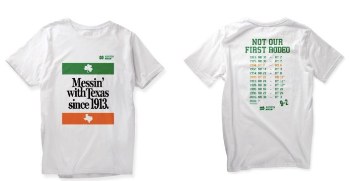 Buoyed by a history of success against the Texas Longhorns, Notre Dame Fighting Irish fans based in Austin are ramping up the trash talk heading into the season opener on September 4 with a T-shirt that will sting a bit for the burnt orange faithful: