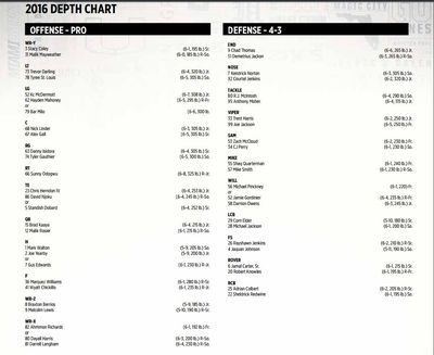 • Gerald Willis III, previously reported to be suspended for the opener, and Sam Bruce, potentially up for suspension (that hasn’t been announced yet), are absent from the depth chart.